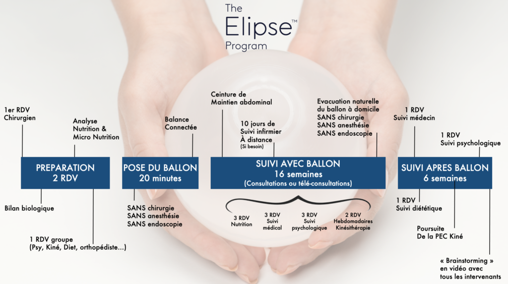 Elipse est un ballon gastrique qui est avalé sous forme de pilule et qui, après 4 mois dans l’estomac, est éliminé du corps comme tout autre aliment que nous ingérons.