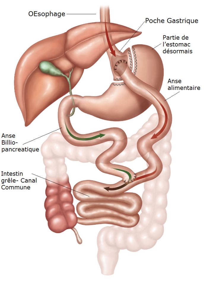 La technique qui est appliquée pour réaliser le bypass gastrique est connue comme ‘Roux en Y‘ dû à la forme en Y que l’on donne au nouveau circuit de circulation des aliments, par le biais de la chirurgie.