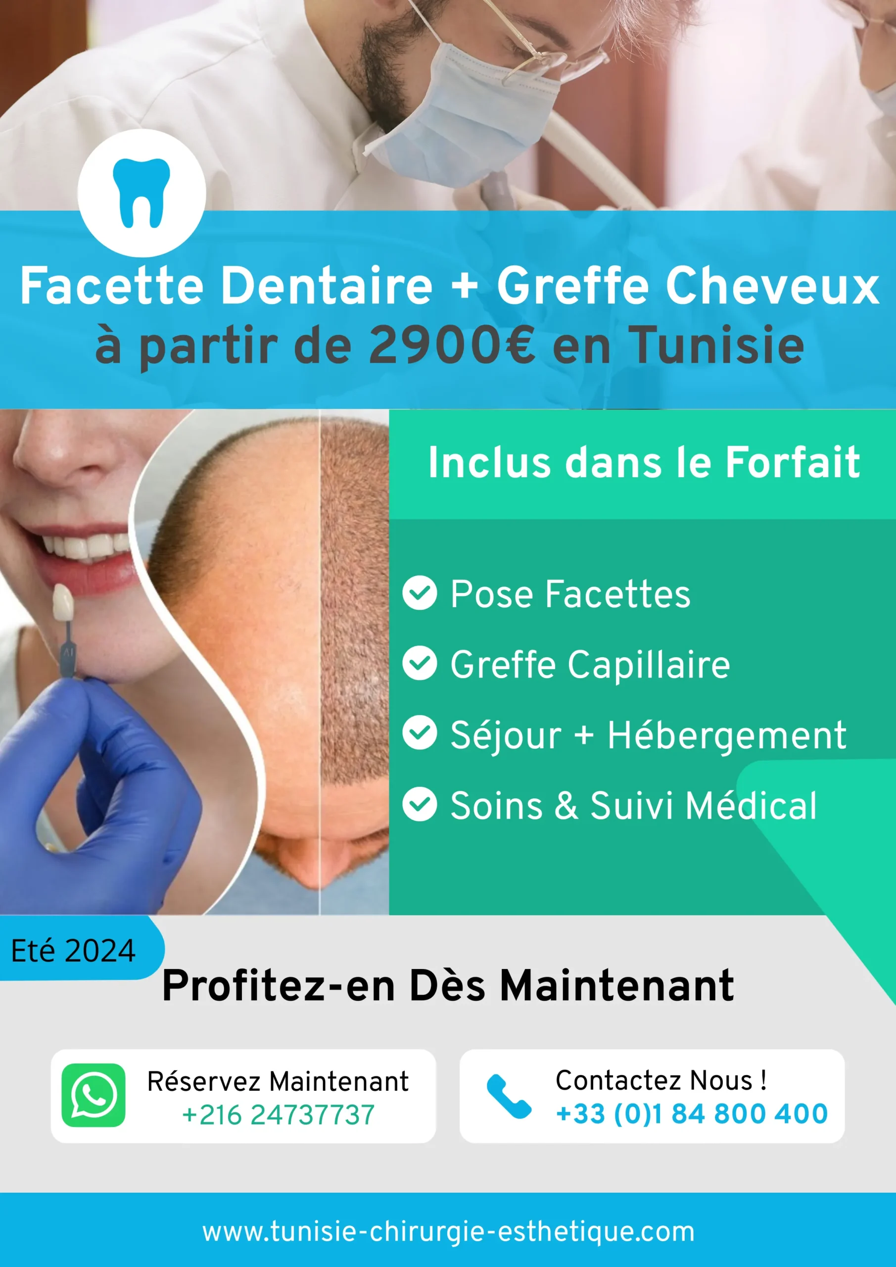 L’alliance parfaite : Facettes dentaires et greffe de cheveux forfait tout compris