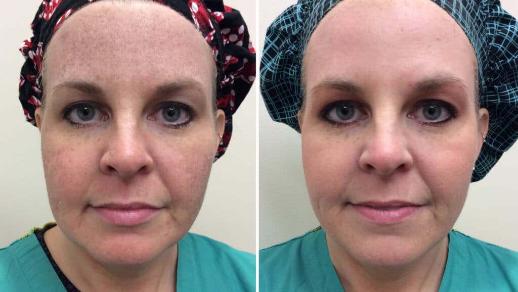 De même, ce traitement au laser produit des milliers de minuscules zones ZTM. Ces zones pénètrent non seulement profondément dans le derme en rajeunissant le collagène et en réduisant les rides, mais traitent également la surface de la partie supérieure de la peau, entraînant la formation de nouvelles cellules épidermiques avec réduction ou élimination complète des pigments inégaux.